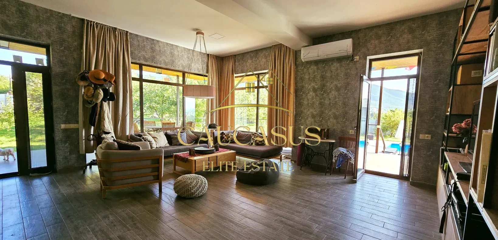 თბილისიდან სულ რაღაც 25 წუთის სავალზე, ეს 2018 წელს აშენებული, 160 მ² სახლი გთავაზობთ გამორჩეულ ცხოვრების სტილს, სადაც თანამედროვე კომფორტი და სუფთა ჰაერი ერთმანეთს ერწყმის. მზიანი ინტერიერი გადის დიდ, კეთილმოწყობილ გამწვანებულ ეზოში აუზით — იდეალურია ოჯახისთვის, რომელიც ეძებს სიმშვიდესა და უსაფრთხოებას.