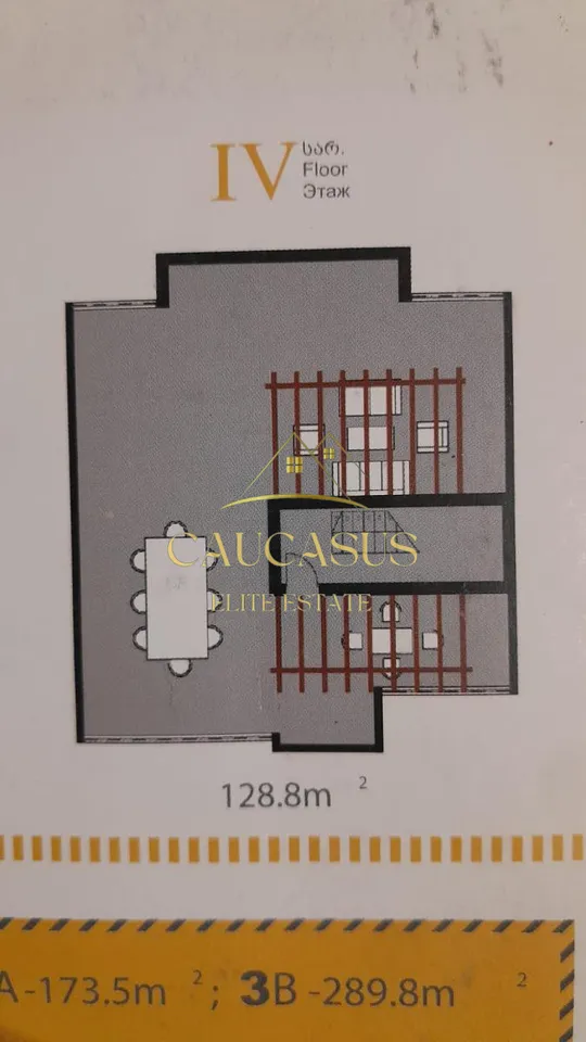 - Top Floor / Terrace (128.8 m²): The crown jewel. A massive recreational room opening onto a spectacular panoramic terrace. Ideal for a rooftop lounge, summer kitchen, or entertainment zone with views of the pine forests.